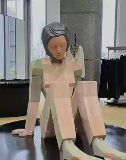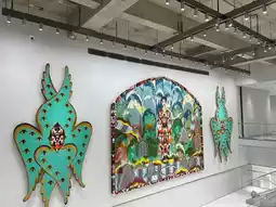 Third floor: Giant human face, simulated cattle, and an old man reading