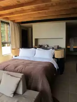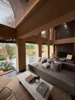 The hotel's wabi-sabi style blends seamlessly with natural elements