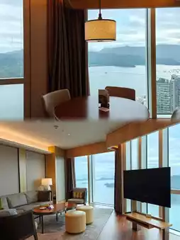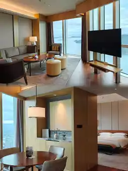 This time, I stayed in a king room on the 35th floor or higher, with an amazing view. Lying in bed, I could enjoy the sea view—so romantic! The room was well-equipped with air conditioning, TV, minibar, and high-quality toiletries. The biggest surprise was how comfortable the bed was, ensuring a great night's sleep.