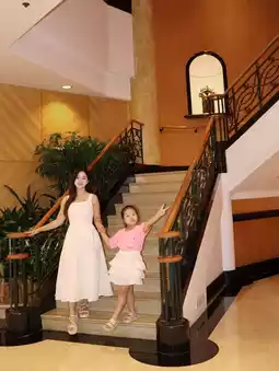 (Whispering) Staying at a hotel with kids is really great! No need to tidy up the room and you can enjoy quality family time. Moms, go for it 💨
