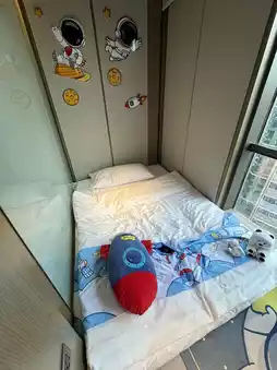 As soon as Lisboy entered the suite, he was greeted by astronaut decorations 🧑🚀, a Welcome Gift, a spacious double bed, a large bathroom, and countless space-themed ornaments 😍. The highlight was a children's space corner complete with a mattress 🌟 designed in a tatami and space style ✨. There were also plenty of kids' play facilities, including a building block table and drawing materials 🎨, keeping Lisboy entertained without even leaving the room 😍.