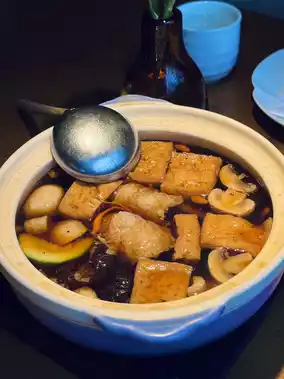 This vegetarian version of Bak Kut Teh is absolutely stunning! Made with fried tofu, wood ear mushrooms, shiitake mushrooms, corn, and other ingredients, the broth is simmered with Chinese herbs and spices, resulting in a rich, aromatic flavor with a hint of sweetness and medicinal notes. The ingredients soak up the broth perfectly, with the tofu being soft on the outside and firm inside, offering a layered texture.
