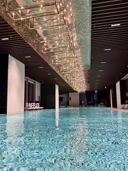 As the brand's representative work in Shenzhen, Raffles combines oriental Zen with urban luxury in an extremely restrained and elegant way. Looking out over the Shenzhen Bay from the infinity pool, the nearby design details are full of greenery, and the distant is the light and shadow of the technological city. In the morning, I quietly soaked in the pool, watching the light pass through the bamboo shadows and projected onto the water. Raffles' swimming pool does not pursue spectacularity, but every detail reveals respect for nature and tranquility. Here, even breathing becomes gentle. One of the most trendy outdoor spaces in Shenzhen, the lights, music and urban scenery are intertwined, making every time you go into the water feel like stepping into the scene of a fashionable electronic music MV. It is an excellent sunbathing corner during the day and a starlight party venue at night.