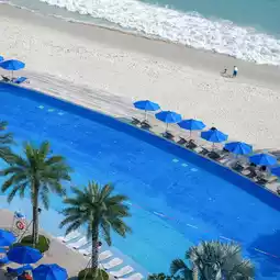 The infinity pool at Dameisha Kingkey Intercontinental Hotel seems to seamlessly connect with the South China Sea. Standing in the water and gazing into the distance, the horizon and the pool's edge gently merge, creating the illusion of floating at the boundary between heaven and earth. The pool is constructed with large glass panels and light-colored stone, exuding a natural resort vibe in its simplicity.