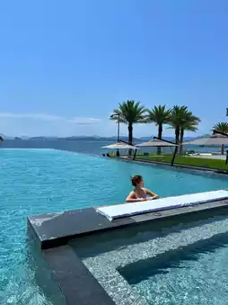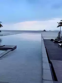 I chose to enter the pool at dusk. The setting sun cast long shadows across the sea, and the interplay of rippling water and golden light in the pool felt like a dreamscape. The sea breeze caressed my skin, and the only sounds were the water and distant waves, immersing me in a relaxed rhythm. This is more than just a hotel pool; it feels like a spiritual ocean, a place where time fades away. All you want is to quietly soak in the water, collecting the sunlight and sea hues one by one.