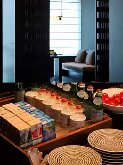 2️⃣ The hotel lobby is compact but instantly tranquil upon entry, shielding guests from external noise. During check-in, the butler serves a specially selected tea and offers three aromatherapy scents to sample. Your chosen fragrance will later be diffused in your room by the butler. Beyond your selected scent, all room amenities feature Le Labo products. These sensory touches enhance the serenity of the space, promoting restful sleep.