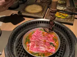 Iberico pork belly ~ The first dish served. Before grilling, it looked quite fatty, but after grilling, it turned out crispy and aromatic. Absolutely delicious 😋.