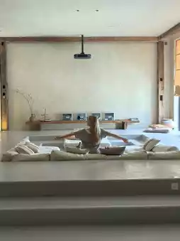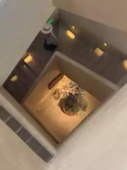 The cool-toned wabi-sabi aesthetic creates a naturally relaxing atmosphere. I especially love the sunken living room and spiral staircase - the design aesthetic is perfectly executed.