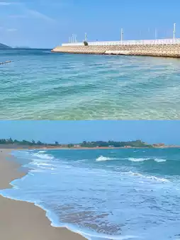 🎫Free entry (no hotel stay required). The blue runway paired with white yachts creates a Japanese film aesthetic. Best photo spot is on the slope between parking lot and beach. Ride the "Langqi Mini Train" (50 RMB one-way) along the picturesque blue coastal path for a relaxing experience.