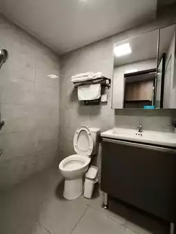 The apartment is conveniently located in a building next to the subway station exit with a wide range of upstairs shops and residences. First take the passenger elevator to the hotel lobby check in, the so-called lobby is actually just converted from a room, relatively simple. After obtaining the password, there is a chance that you will need to transfer to a passenger elevator at another seat number to reach the room. The interior of the room is clean and hygienic, with a cooking stove and outdoor balcony, plus a giant projection screen, which is best for watching movies however, but the washrooms are not separated from dry and wet.