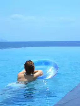 The pool is designed by the sea, seamlessly connected to the azure waters and silver beaches of Dameisha. Stepping into the pool feels like being suspended between the sea and sky. The blue waters blend perfectly with the heavens, with white clouds drifting in the distance and seabirds soaring above.