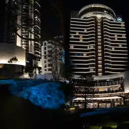 ⛱Hotel Environment: Features a swimming pool, fitness spa facilities, and an elegant green garden at the entrance