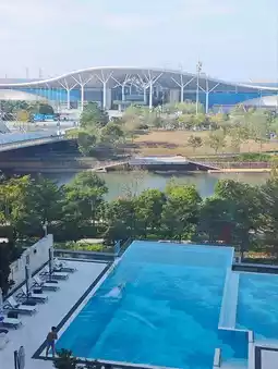 ✅ Room with direct views of the pool, Fuyong River, and the convention center! Stunning scenery that makes staying in the room super chill.
