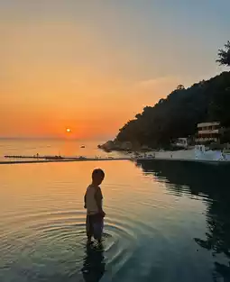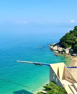 Not that Sanya isn't worth it, but this Shenzhen beach offers better value! Seriously! You won't want to leave once you're here—no crowds to deal with!! Even on weekends, you can have this glass sea all to yourself. We stayed overnight with the kids and quickly felt our fatigue melt away. Our room offered sunset views over the orange-tinted sea (~plus a floor-to-ceiling window with a large bathtub. The amenities were complete, and the TV volume was thoughtfully set to a considerate level—perfect for families with little ones. The hotel features a seaside pool, spa, gym, sound bowl therapy, KTV, game room, library, tea house, and a kids' playground, ensuring fun for both adults and children. With no other businesses nearby, the hotel has a 7-Eleven, both Chinese and Western restaurants, meeting all dining needs at surprisingly reasonable prices!! Drinks cost less than 10 yuan and taste authentic! To the left of the hotel, there's a shaded boardwalk perfect for a comfortable seaside stroll—don't miss it. Before you go, check these tips: • Choose a sunny day for better photos • Light-colored outfits photograph well • Enjoy a free 45-minute yacht trip (requires booking one day in advance) • Don’t forget sun protection: sunscreen, sunglasses, hats, and umbrellas.