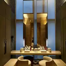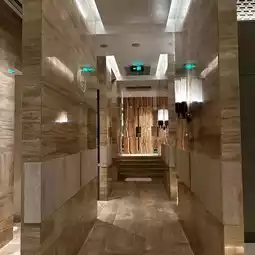 Are you still worried about checking in at the hotel pool? Park Hyatt Shenzhen tells you that the real surprise is hidden in the dressing room! Walking into the dressing area here, you will be instantly shocked by the design of the pool space - a wall made of thousands of layers of jade stone stands in front of you, and the layers of texture are like a natural art scroll. Under the rendering of warm yellow light, it exudes a warm and luxurious texture.