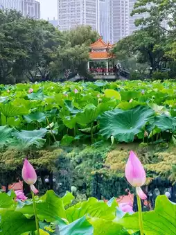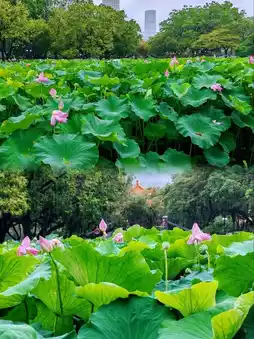 Honghu Park boasts a hundred acres of lotus ponds with over 500 varieties, including rare species like water lilies and Victoria lilies. From delicate and elegant to vibrant and striking, the flowers come in all shapes and colors.