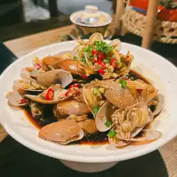 In one word: rich. Besides the star ingredients of the dish, there's also a variety of toppings like squid throat, tripe, lettuce, and loofah. The pot is overflowing with ingredients, and every bite is a different surprise. The chewy squid, the savory shrimp, the crispy squid throat, the chewy tripe, and the fresh lettuce and loofah create a distinct and rich flavor. Twice-cooked Pork with Salted Vegetables