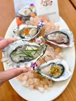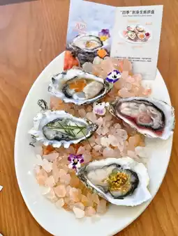 The oysters here are chartered and airlifted three times a week, and fresh oysters are delivered directly by special planes to ensure freshness. Moreover, the professional oyster opener opens the oysters on order when they arrive at the store, and they can be eaten immediately after opening the shell to ensure the best flavor restoration. The oyster opener takes care of every step carefully, and every oyster is served with quality assurance. It is absolutely fresh when you take a bite!! The oyster meat is plump and tender, and the sweetness of the seawater bursts in your mouth, which is super delicious. Four seasons sashimi oysters use four different toppings!