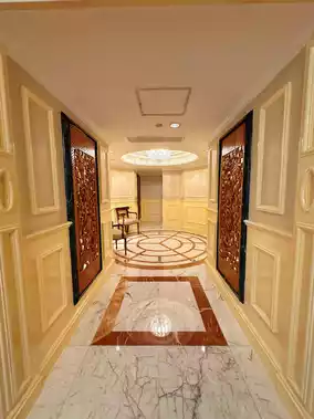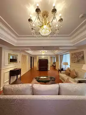 The living room serves as the social heart of the suite—spacious, bright, and furnished with plush sofas and elegant coffee tables, making it ideal for business meetings or gatherings with family and friends. Here, you can discuss future plans with partners or share joyful moments with loved ones. For moments of solitude or focused work, the adjacent study provides a quiet retreat, fully equipped to immerse you in knowledge or productivity.