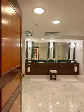 The suite's bathroom is equally stunning, featuring a practical dry-wet separation design. The spacious bathtub invites you to unwind and enjoy a soothing soak after a long day. Premium-brand bath amenities, with their rich lather and delightful fragrances, elevate your bathing experience to one of pure luxury and indulgence.