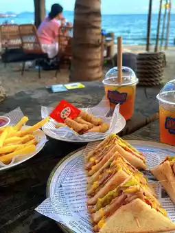 The curry chicken and fried spring rolls at the beach bar are highly recommended, and the freshly made iced lemon tea is refreshing and refreshing. Many couples were taking wedding photos on the beach, so I took advantage of low tide to pick up oysters with my children.