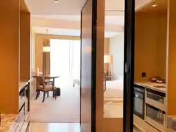 The hotel rooms are all situated above the 30th floor, and I stayed in a standard mountain view king room on the 48th floor. When I opened the curtains, I was greeted by a view of city buildings—not a perfect mountain view, but the high floor provided a broad perspective. To the left, I could even see the sea. At night, the city lights flickered between the contours of the mountains and the sea, creating a unique atmosphere of being away from the hustle and bustle while still feeling connected. It’s perfect for those moments when you don’t want too much excitement but also don’t want to feel completely isolated.
