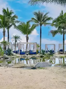 This place is mainly for wedding photoshoots, featuring some European-style architecture. The sea is crystal clear with staff supervision, allowing activities like swimming and surfing (extra fees apply).