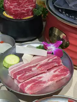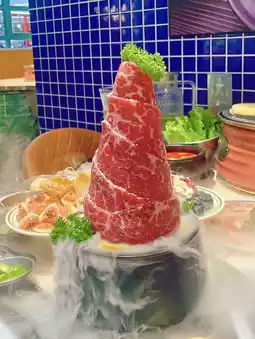 Special fatty beef, fat and lean, full of meat fragrance, grilled to a sizzling sound, served with their sesame sauce dipping sauce, it is called an endless aftertaste.