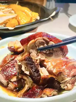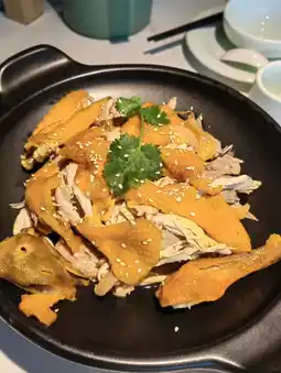 The salt-baked chicken is even more amazing. The whole chicken is wrapped in coarse salt and baked golden and oily. The moment it is torn open, the heat mixed with salty fragrance rushes straight to the top of the head. The chicken skin is chewy with a slight charred aroma, and the chicken is so tender that it bursts with juice.