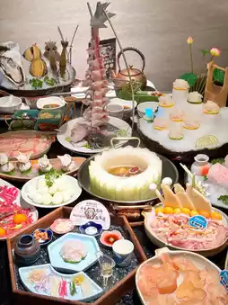 Vegetables: Colorful Potatoes, Guifei Crispy Ear Mushrooms, Golden Hand-Baked Two-Color Fish Balls, Shunde Handmade Fish Tofu, Bamboo Fungus Soup Dumplings, Cod Romantic Rose