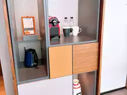 The room was equipped with a mini fridge and a capsule coffee machine ☕, showcasing the hotel's thoughtful attention to detail. Complimentary mini bar items, including coffee, snacks, and bottled water 🍫💧, added a personal touch to the experience.