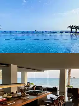 The InterContinental Shenzhen Dameisha Resort boasts an unparalleled location just 35 meters from the sea—a rarity you’d be hard-pressed to find elsewhere. The distant Meisha Peak adds the perfect finishing touch to the breathtaking view. All south-facing rooms are oceanfront, offering uniquely captivating seaside vistas. The hotel’s design incorporates many elements of modern Chinese gardens, paired with a monochrome palette of black, white, and gray, resulting in a sleek and stylish aesthetic. Whether in the lobby or the restaurant, the floor-to-ceiling windows provide unobstructed views of sunlight and the sea.