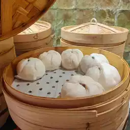 There are also hot dishes such as fried rice, dim sum, buns, and noodles.