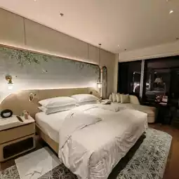 Check in to the "Deluxe Bay View Room" on the 32nd floor, the floor-to-ceiling window is flush with the guardrail of the Shenzhen Bay Bridge! I was awakened by the sound of the container ship's whistle before I woke up earlier. Late at night, the lights of Hong Kong's Lau Fau Shan on the other side were floating on the surface of the bathtub - 24-hour panoramic dynamic wallpaper is worth 80% of the room price!