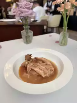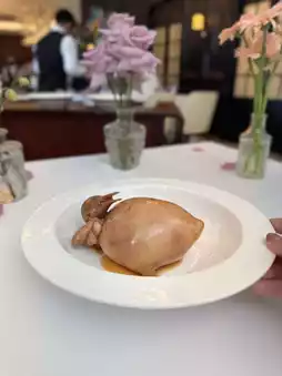 Boiled pork legs with pigeon eggs in Japanese sauce