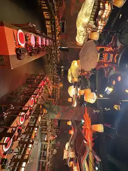 The cypress wood is fragrant, the screens are shadowed, and the ink-colored walls reflect the low-hanging lights. Even time slows down here. The moment you sit down, you are not just dining, but walking into a quiet oriental conversation.