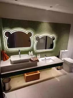 🌲 A harmonious blend of vibrant colors and functional design in this fairytale-inspired space, featuring partitioned areas for versatile use in leisure or work - perfect for family vacations, gatherings, or girls' trips 🙌🏻