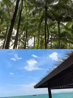 Between 2-3 PM when the sunlight slants, the water looks like jelly. The silhouette of the thatch pavilion combined with splashing waves instantly creates a cinematic poster vibe.