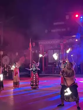 🔥Night's finale fire show: fire eating, fire meteor, fire dance, etc., visual shock to explode! There is also an intangible cultural heritage steel flower on the weekend, 1600°C iron water turns into stars all over the sky, romantic to dizzy!
