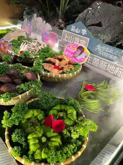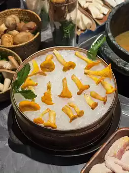 Specialty Mushrooms: Over ten varieties of wild mushrooms, including shimeji, red onion porcini, and black tiger palm mushrooms, are available for hot pot or sashimi.