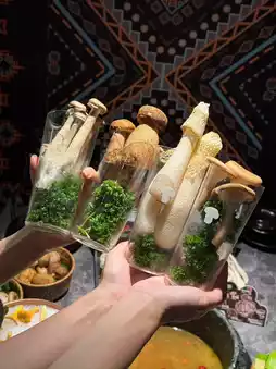 Yunshanji Yunnan Wild Mushroom Hotpot features a creative combination of Yunnan's signature wild mushrooms with free-range chicken, beef, and other ingredients.