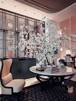 Inspired by "Birds Returning to Nest" with an "Eastern Essence, Western Context" design concept that blends Lingnan charm with modern aesthetics. The grand lobby showcases a 12.5-meter-high monumental door, while rooms feature bird-and-flower motifs. Art pieces and botanical arrangements create an elegant, tranquil atmosphere.