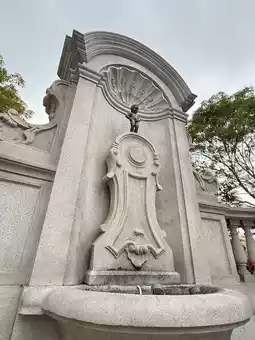The giant clock face and the Trevi Fountain Square in front evoke a sense of medieval Europe. The cathedral features an orange and white medieval design. 8-10 AM, with its soft sunlight, is the perfect time to check out the pictures.