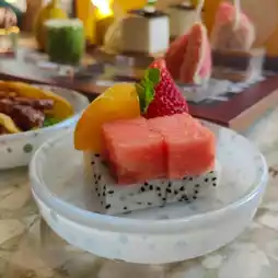 First of all, the furnishings are incredibly thoughtful. All the desserts were clearly meticulously crafted. They featured classical Chinese musical instruments, some in animal shapes, and a fruit plate and Peking duck. 🐤