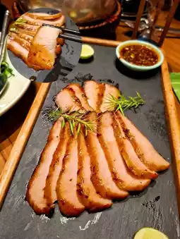 The must-try [Charcoal-grilled Pork Neck], smoked with fruit wood and slow-roasted at low temperatures, is tender and succulent, with a vibrant charcoal flavor. The crispy exterior and tender interior are complemented by a special Thai sauce, which further enhances the flavor.