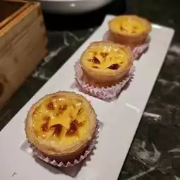 The egg tart crust is crispy, while the filling is rich, creamy, and fragrant with egg. The caramelized surface adds a slight roasted sweetness, melting in your mouth.