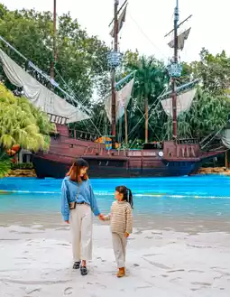 Many mothers will be familiar with the hotel's public areas. Don't miss the signature pirate ship beach pool 🏖️, which is both fun for children and photogenic. Next door is the heated indoor pool and a large, warm soaking tub, which is incredibly relaxing.