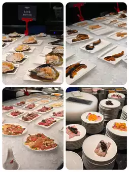 The cold plate has honeydew melon🍈 with ham, delicious😋 There are also a variety of sashimi sushi🍣 Desserts include cake and ice cream, fruits are seasonal, such as honeydew melon🍈, cherry🍒, mangosteen, grapes🍇, watermelon🍉, etc... There are many kinds of drinks, such as beer🍺, sake, juice, tea, etc It's really suitable for friends who like seafood and want to eat all-you-can-eat 👫