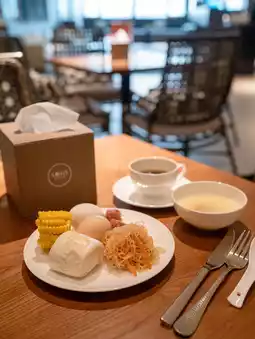 The lobby is stylishly decorated, and the dining area is spacious and comfortable. The afternoon tea is quite extensive, and we didn't have time to eat before we passed through immigration, so we quickly filled up. ☺️