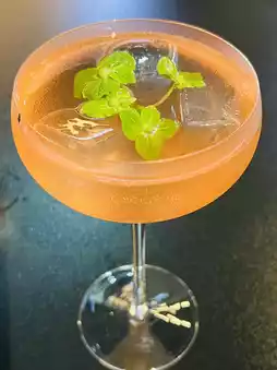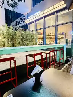 The interior is modern and stylish, and the overall space is spacious and comfortable, with a large outdoor seating area, giving it a camping feel. The owner's service is also very friendly. It wasn't crowded on a weekday evening, so it didn't feel crowded. I ordered a non-alcoholic cocktail and took a sip. It was sour and sweet, with a rich peach flavor and a sparkling water texture. It was very refreshing and perfect for summer. The owner was also very thoughtful and gave me a small snack to go with it. It was awesome!